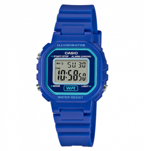 Asimismo, como en los demás modelos ya descritos, este reloj es resistente al agua, su batería dura 5 años y la correa y la caja son de resina.