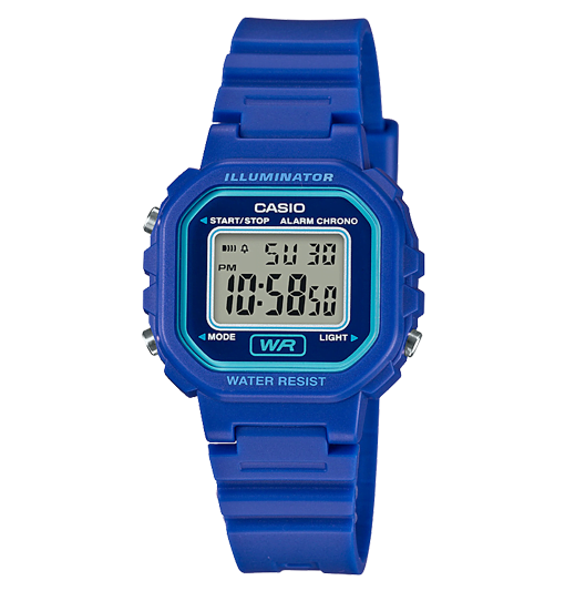 Asimismo, como en los demás modelos ya descritos, este reloj es resistente al agua, su batería dura 5 años y la correa y la caja son de resina.